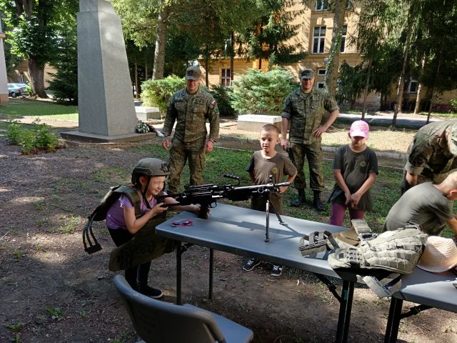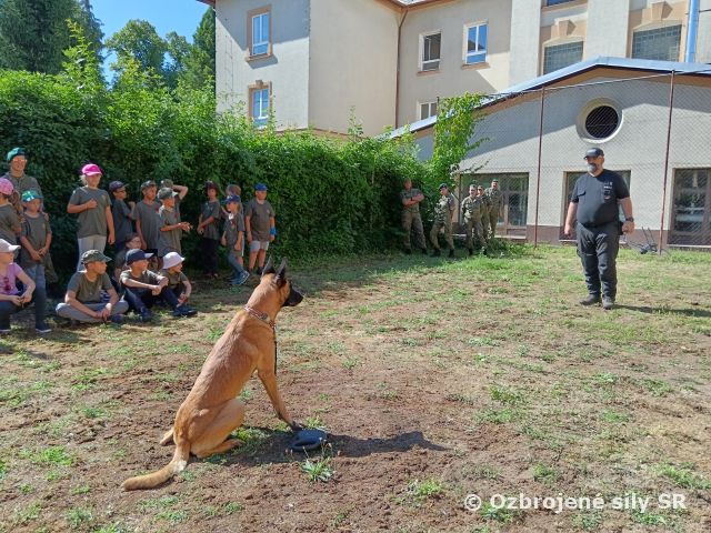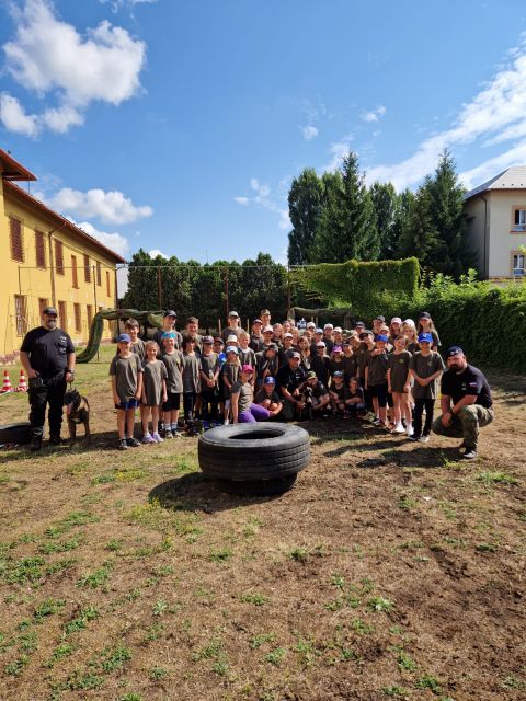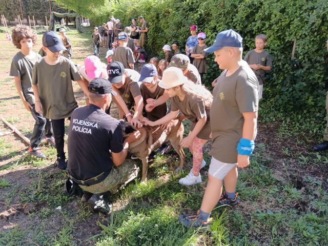 Denný detský tábor po vojensky V termínoch 14.-18.7. a 21.-25.7. 2025 sa po niekoľký ročník 71. prápor podieľal na príprave a priebehu denného detského tábora pre deti profesionálnych vojakov, organizovaného posádkovým klubom v Trenčíne. Na deti počas obidvoch turnusov čakal bohatý program, ako napríklad prednáška o výrobe medu, ochutnávka medu, výroba sviečok a medovníkov, tajné šifry , hlavolamy, vedomostné otázky, pohybové aktivity, plavba na dračích lodiach, orientačné hry, popoludnie s hasičmi, s vojenskou a štátnou políciou, vystúpenie vojenskej hudby a základné techniky bojového umenia – Aikido. Samozrejmosťou boli aj ukážky ručných zbraní, výzbroje a techniky, zásady pri poskytovaní prvej pomoci, obľúbená prekážková dráha a streľba zo vzduchových zbraní. V neposlednom rade musíme spomenúť aj dynamickú ukážku vojenskej polície a ich štvornohých kolegov, ktorá ma u detí každoročne neskutočný úspech. Počas tohto nabitého a zaujímavého programu boli deťom neustále nápomocní profesionálni vojaci a zamestnanci zo 71.prpv a posádkového klubu v úlohe organizátorov a animátorov. Deti boli opäť veľmi spokojné, s novými vedomosťami, kamarátstvami a príjemne „vybláznené“, o čom svedčali aj prázdne taniere počas obedov. Tešíme sa opäť o rok!